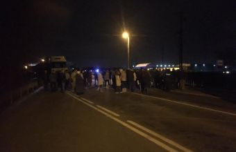 Приблизно 100 людей постійно переходять дорогу з плакатамии, на яких вони написали: «Ні сміттю» й «Мафію геть з Рясного».