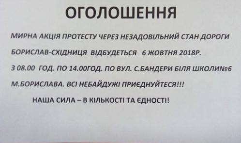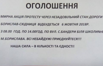У суботу, 6 жовтня, у зв‘язку з вкрай незадовільним станом дорожнього покриття, буде перекрита дорога «Східниця-Борислав».