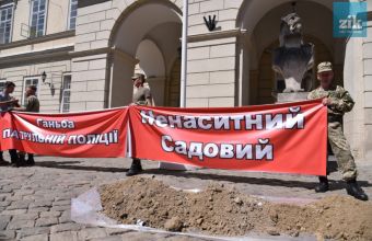 Протестувальники засипали землею вхід до міськради Львова (відео)