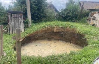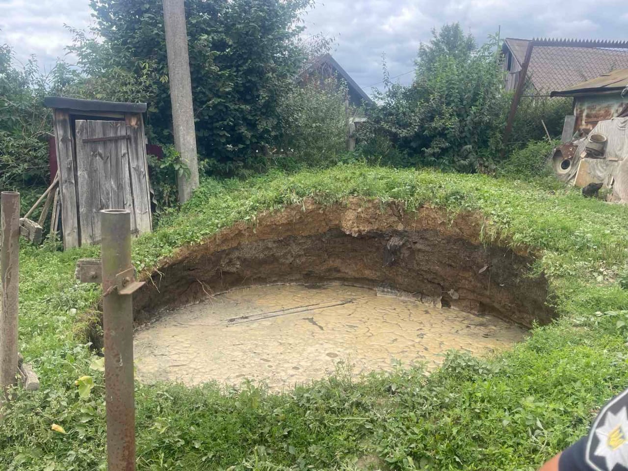 За попередньою інформацією, на подвір’ї приватного господарства у селі Бердихів (вул. Степана Бандери) утворилася вирва орієнтовною площею 18 кв. м.
