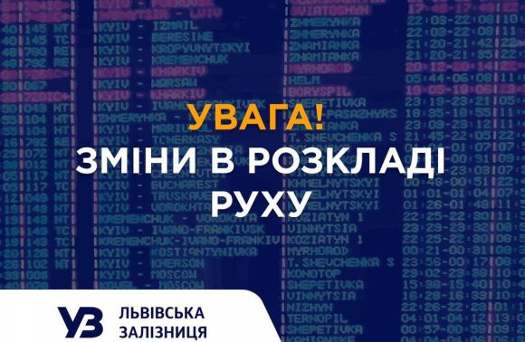 поїзд № 6005 сполученням Львів – Трускавець вирушатиме зі Львова о 10:50 (замість 10:20) та прибуватиме на кінцеву станцію о 13:26;