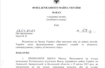 Керівником регіонального відділення фонду державного майна у Львівській, Закарпатській та Волинській областях призначено Миколу Іщука.
