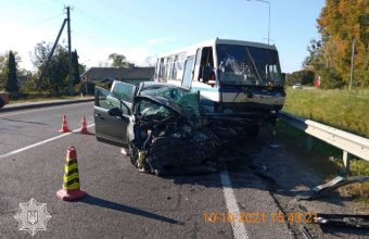 За повідомленням поліції, на автодорозі Київ-Чоп, біля населеного пункту Кізлів, трапилося зіткнення між автомобілем Peugeot 5008 та рейсовим автобусом.