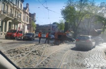 На вулиці Івана Франка ремонтують трамвайну колію.