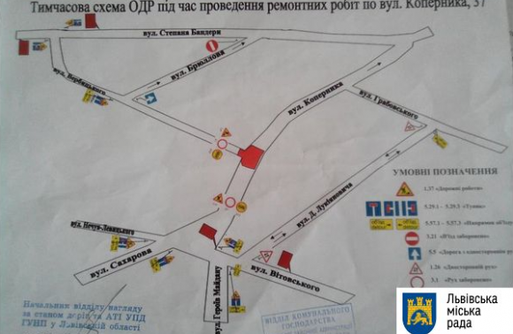 У міськраді пояснили: «Перекриття руху транспортних засобів на перехресті вулиць Коперника й Вербицького зумовлене проведенням ремонту каналізаційного випуску будинку №37 на вулиці Коперника».