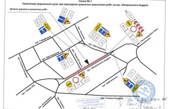 Ремонтники продовжили перекриття руху транспорту вулицею Митрополита Андрея