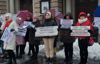 Через оголошення повітряної тривоги пікет призупинили. Загалом він тривав до 14:00.