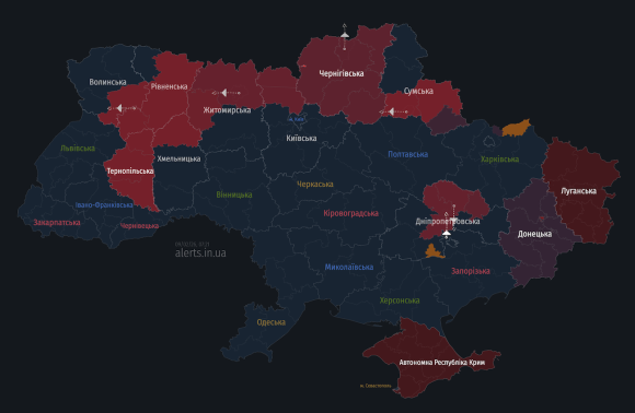 Повітряна тривога оголошена у Тернопільській, Рівненській і частині Волинської областей.