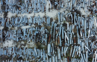 Вид на залишки снарядів РСЗВ, які російські війська використовували для військових ударів по місту та зібрані саперами в Харкові, Україна, 29 листопада. (Віталій Гніди/Reuters)