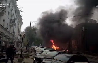 Після атаки безпілотників у центрі міста виникла масштабна пожежа.