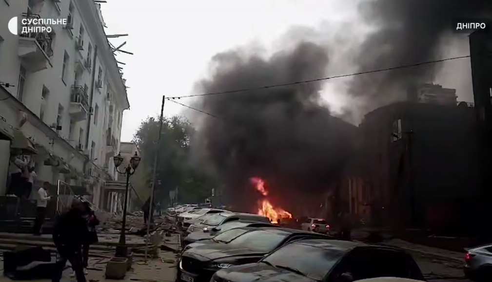 Росіяни атакували центр Дніпра. Масштабна пожежа, є поранені (відео)