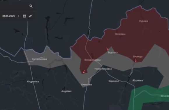 У ніч проти 1 червня аналітичний проєкт DeepState повідомив про окупацію села Володимирівка Сумської області.