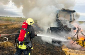На момент прибуття вогнеборців до місця виклику трактор був повністю охоплений вогнем.