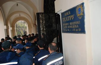 «На варті безпеки театру перебувають чотири працівники, троє з яких чергують у нічний час позмінно. Саме вони й повинні повідомити Службу порятунку про виникнення пожежі у театрі, зустріти пожежно-рятувальне відділення, надати необхідні ключі від приміщень, й консультувати рятувальників щодо можливого перебування людей у будівлі», – поінформували також в обласному управлінні ДСНС.»