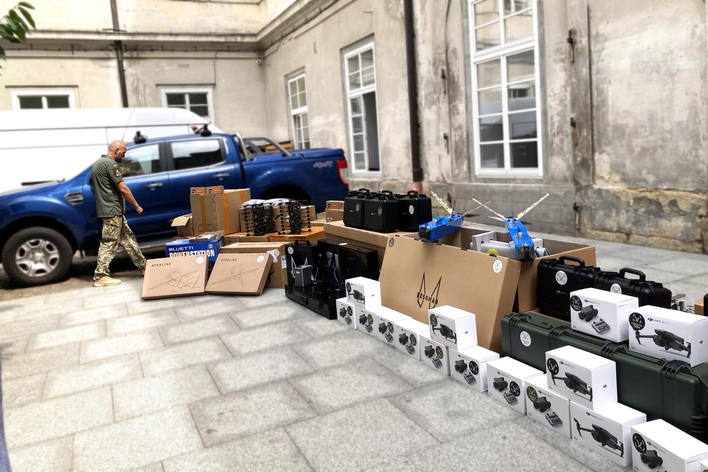 Сьогодні військовим передали: 200 FPV-дронів та 50 дронів Mavic різних моделей; автомобіль; безпілотник «Мара» та розвідувальний комплекс «Бесомар»; супутникову систему Starlink; зарядні пристрої, акумулятори та комплекти пропелерів.