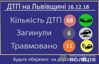 16 грудня на автодорогах Львівської області сталися 68 дорожньо-транспортних пригод, шість із яких – із потерпілими.
