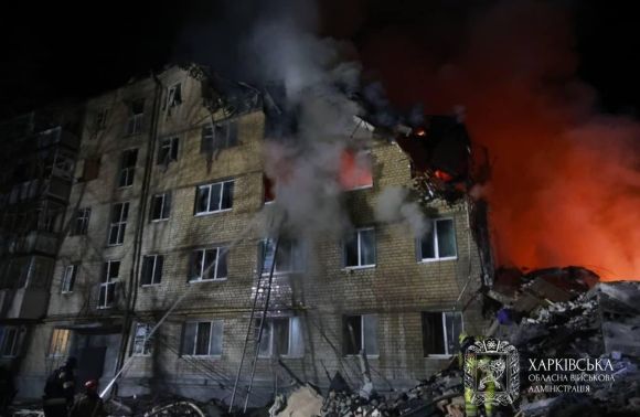 За повідомленням ГУ ДСНС у Харківській області, сьогодні вночі внаслідок ворожого ракетного удару по місту Харків повністю зруйновано під’їзд 5-поверхового житлового будинку, а також конструкції квартир верхніх поверхів сусіднього будинку.