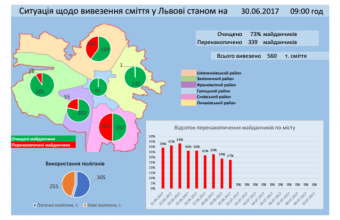У Львівській міськраді повідомили сьогодні, 30 червня, що вчора сміттєвози звільнили Львів від ще 560 тонн відходів. Зокрема, 305 тонн вивезли за угодами, які перевізники мали укладені раніше, а 255 тонн – за домовленостями, які уклали завдяки комісії з питань техногенно-екологічної безпеки та надзвичайних ситуацій.
