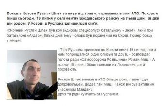 «Руслан Шпек воював в АТО більше року, пішов туди добровольцем, – додав Роман Миц. – Також він був активним учасником Майдану».