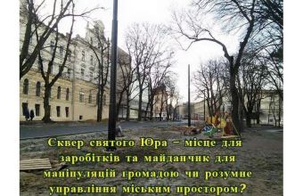 Тобто при будь-якому рішенні будуть незадоволені, а причина цього полягає в тому, що, приймаючи рішення про реалізацію таких проектів, міська рада робить це поспіхом, без належних розрахунків та аналізу соціальних впливів, з порушенням законодавства, що неминуче призводить до конфліктних ситуацій. Щоб вирішувати такі питання і уникнути їхнього виникнення в майбутньому варто детально проаналізувати увесь процес реконструкції площі Юра, механізми прийняття міською радою рішень, які не продумані до кінця і не узгоджені з громадою.