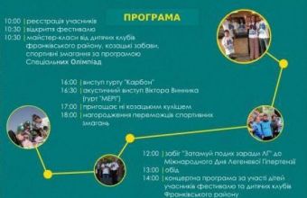 «Також під час фестивалю відбудуться змагання серед шкіл-інтернатів Львівщини за програмою Спеціальних Олімпіад. Діти зможуть позмагатися в таких дисциплінах, як: футбол, флорбол, настільний теніс, каякінг та баскетбол. Переможці змагань отримають ліцензії на ІІІ «SO Open Games in Lviv».