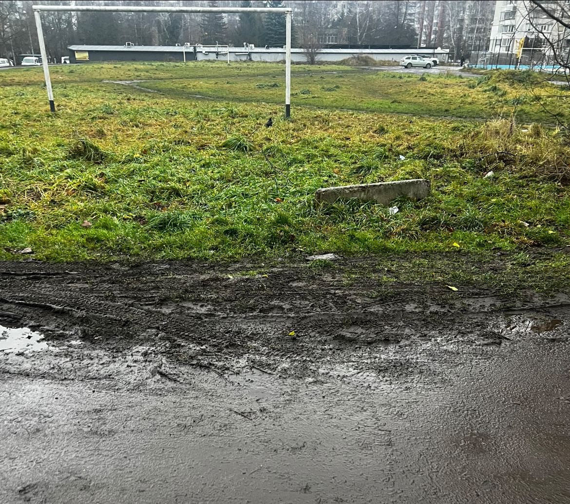 "Між будинками Петра Панча 18- 18 А - 18 Б та садочком 31 створили паркувальний майданчик на стадіоні, а також під'їжджають автомобілем до паркану садочка через стадіон, привозячи своїх діток, хоча брама та заїзд до садочка - з вулиці Юрія Липи. Таким чином стадіон перетворюється на суцільне болото.