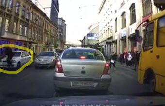 Таксист віз у Львові пішохода на капоті автівки