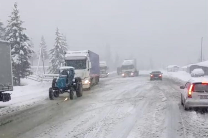 «На трасі Київ-Чоп на перевалі між Львівською і Закарпатською областю рух ускладнено, трактори тягають фури», – повідомили сьогодні, 9 грудня, на сторінці громадської організації «Варта 1» в інтернет-мережі «Facebook», де також опублікували фото з місця події.