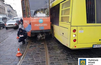 У вівторок, 18 грудня, на вулиці Городоцькій не розминулися автобус і трамвай.