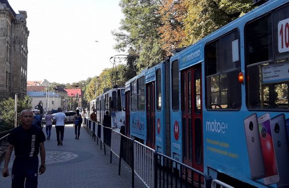 На сторінці громадської організації «Варта 1» в інтернет-мережі «Facebook» опублікували сьогодні, 8 серпня, фото з центру Львова й повідомили: «Гарна довга черга трамваїв на вулиці Підвальній. Там написано: «На ремонт».
