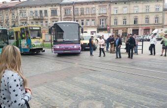 На сторінці громадської організації «Варта 1» в інтернет-мережі «Facebook» опублікували сьогодні, 17 квітня, фото з вулиці Городоцької й повідомили: «ДТП біля церкви святої Анни вулиці Городоцькій – рейсовий пасажирський автобус і «Фольксваген Транспортер». Рух трамваїв заблоковано».