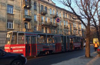 Біля Винниківського ринку на вулиці Личаківській у Львові простоюють два трамваї, які курсували в напрямку кінцевої зупинки на вулиці Пасічної.