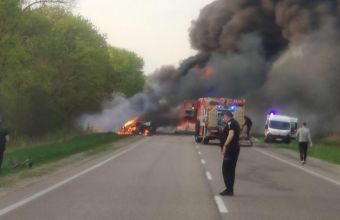 На Рівненщині у вівторок ввечері, 3 травня, на трасі Київ — Чоп зіткнулись рейсовий автобус та бензовоз.