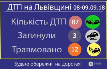 Про це повідомили в понеділок, 10 вересня, в прес-службі Головного управління поліції у Львівській області, де також розповіли: «У ДТП троє людей загинули (велосипедист, мотоцикліст та пасажир), а ще 12 (п’ятеро водіїв, чотири пасажири, пішохід, велосипедист та мопедист) отримали тілесні ушкодження».