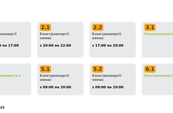 Група 2.2. Електроенергії немає з 17:00 до 20:00.