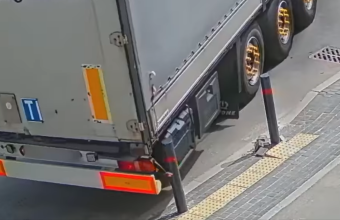 ЛКП “Львівавтодор” опублікувало відео моментів збиття вантажівками антипаркувальних стовпців на реконструйованій ділянці вул. Шевченка.