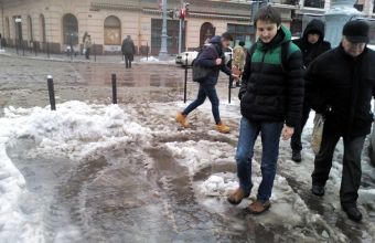 Центр Львова перетворився сьогодні, 2 грудня, на суцільну калюжу. Через снігову кашу на тротуарах пішоходи змушені перестрибувати калюжі. На нерозчищених дорогах – ДТП, затори і тягучки. Відповідні фото львів'яни викладають у соцмережах та звинувачують у бездіяльності комунальні служби.