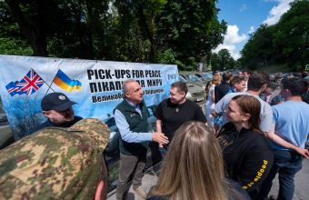 Цілими сімʼями з дітьми. 64 британці привезли на Львівщину 32 позашляховики для фронту