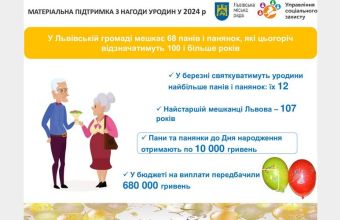 Усіх ювілярів, як і щороку, від імені громади вітатимуть представники міської влади. Тим львів’янам, яким виповниться сто років, на день народження з бюджету нашої громади нададуть одноразову матеріальну допомогу в сумі 10 тис. грн, подарують пам’ятну монету та вітальний лист від імені міського голови. Усім, хто святкуватиме 101 та більше років – 10 тис. грн.