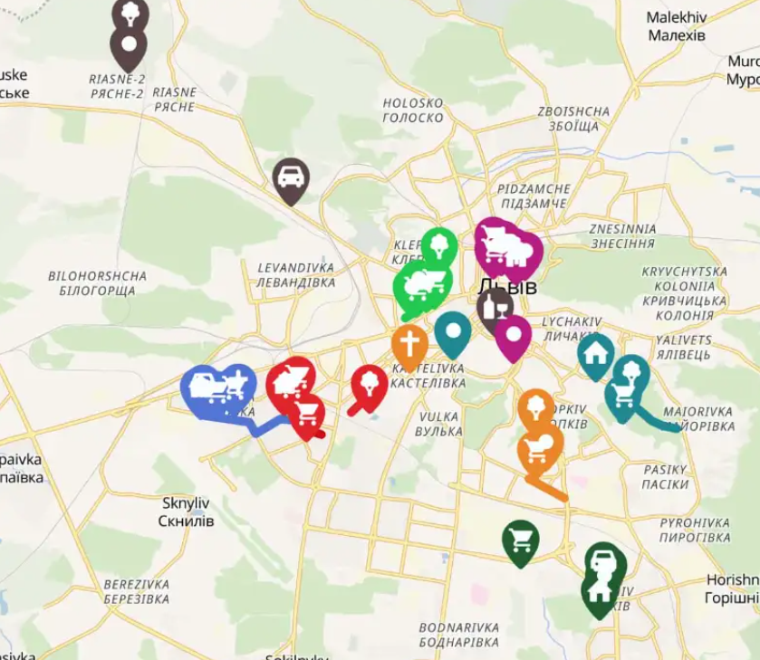 Локації й короткі описи проєкту “Проживаючи Місто: Історії і Маршрути” нанесли на віртуальну мапу, якою можна прогулятися і побачити знайомі місця під іншим кутом. Наприклад, зазирнути в улюблені крамнички, подивуватися молитві за ВПО, купити 50 хот-догів або дізнатися, де насправді збирається місцева інтелігенція.
