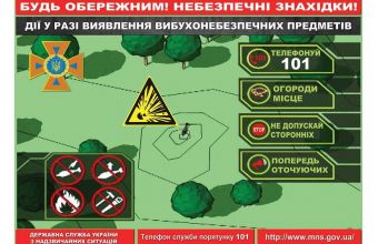 «З початку року на території Львівської області виявлено 1128 вибухонебезпечних предметів, 2540 набоїв та 42 підривника. Тому, якщо Ви натрапили на вибухонебезпечний предмет, категорично заьороняється: торкатися предмету і пересувати його; користуватися засобами радіозв’язку, мобільними телефонами (вони можуть спровокувати вибух); заливати його рідинами, засипати грунтом або чимось його накривати; торкатися підозрілого пристрою та здійснювати на нього звуковий, світловий, тепловий чи механічний вплив, адже практично всі вибухові речовини отруйні та чутливі до механічних, звукових впливів та нагрівання», – повідомили сьогодні, 10 жовтня, на сторінці Львівського обласного управління ДСНС в інтернет-мережі «Facebook», де також нагадують:: «При виявленні вибухонебезпечного предмету телефонуйте за номерами 101 або 102».