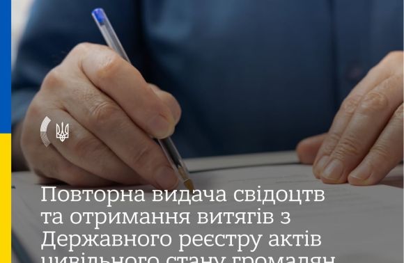 - свідоцтва (повторно) про народження, про смерть, про зміну імені, про шлюб, про розірвання шлюбу;