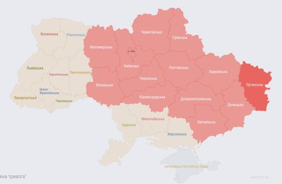 Сигнал про повітряну тривогу пролунав у 12-ти областях України.