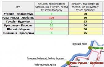 190 транспортних засобів очікують у чергах у пунктах пропуску на Львівщині, а ще 170 – перед ними.
