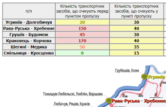 190 транспортних засобів очікують у чергах у пунктах пропуску на Львівщині, а ще 435 вишикувалися перед ними.
