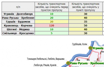 225 транспортних засобів очікують у чергах у пунктах пропуску на Львівщині, а ще 185 скупчилися перед ними.