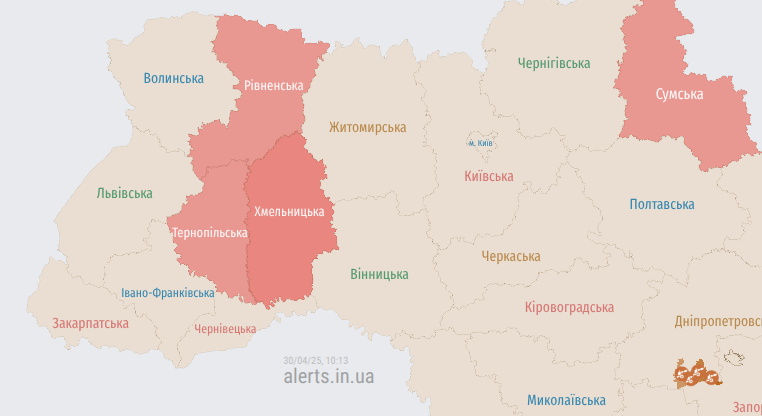 Під загрозою повітряних ударів перебувають Тернопільська, Рівненська області, Хмельницька області.