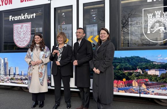 Цього тижня у Франкфурті-на-Майні запустили особливий трамвайний вагон. Він має назву «Франкфурт-Львів» і на ньому зображені панорами обох міст. Вагон символізує партнерство і дружбу між німецьким і українським містами. Такі вагони з назвами міст-побратимів — традиція для Франкфурта: кожне з 18 міст має свій фірмовий трамвай. Тепер серед них — і Львів.