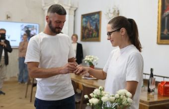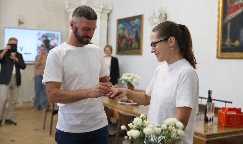 У стінах мерії Львова відбулась незвичайна подія – заручини. Закохані Оксана Бойко і Ярослав Савченко 4 роки разом, але одруження відкладати через війну. Однак, коли в їх дім 21 серпня влучила ракета, зрозуміли, що не варто відкладати подружнє життя на завтра. Мер Львова Андрій Садовий радо підтримав пару та запропонував їм особливе місце для події – серце міської Ратуші.