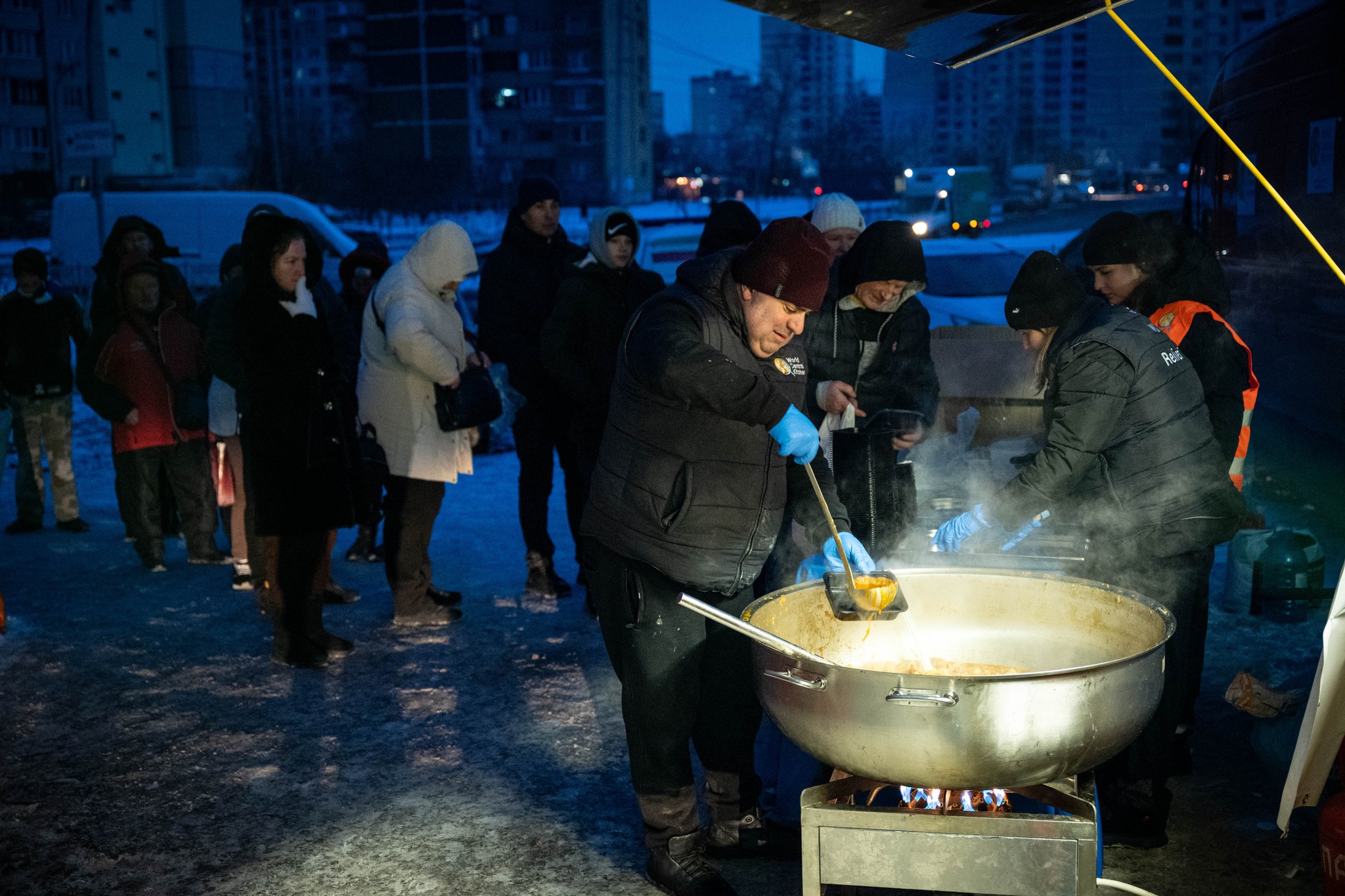 Загалом у Києві працює 56 точок видачі гарячої їжі. Її готують World Central Kitchen та Червоний Хрест у співпраці з ДСНС. За тиждень люди отримали понад 26 000 порцій.